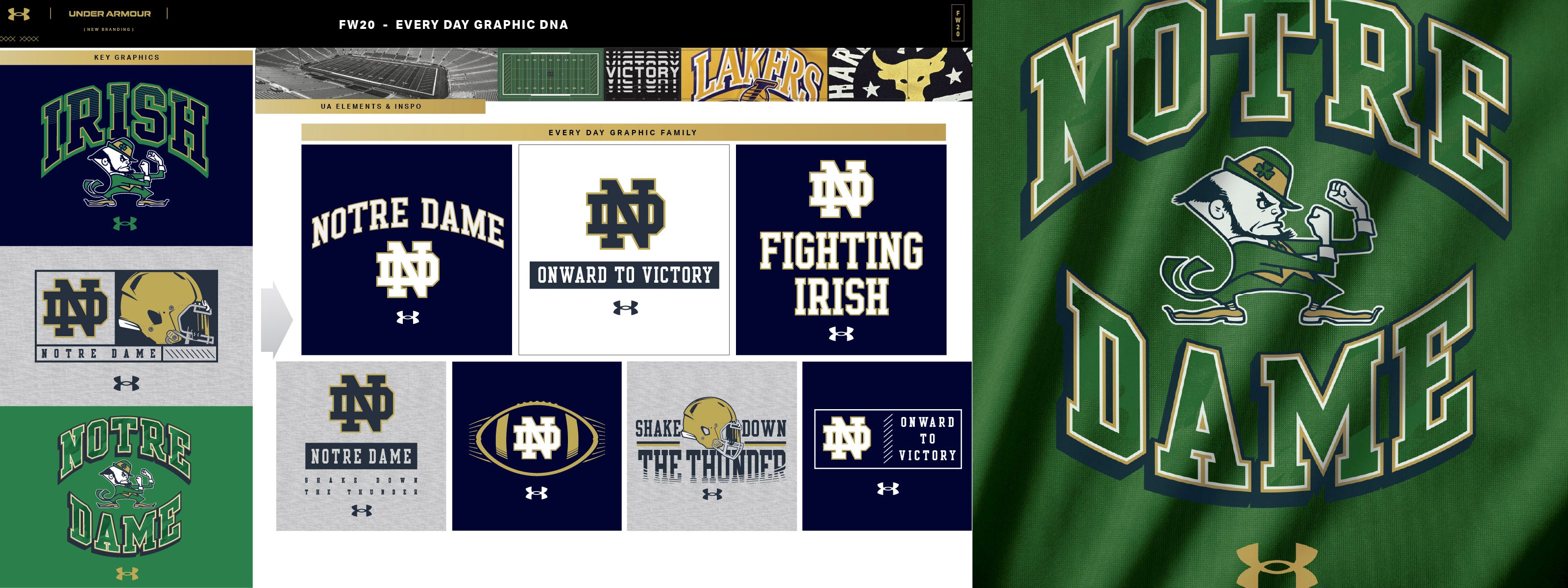 Licensed sportswear goes beyond team colors and logos — it’s about honoring legacy, elevating identity, and translating team pride into compelling visual narratives that resonate with the consumer. Here I show my process of graphic development and the deep research into a team's history, culture, and iconic moments — from legendary athletes to beloved chants and locational landmarks. These stories become the foundation for cohesive graphic collections spanning uniforms, sideline gear and fanwear for every occasion.